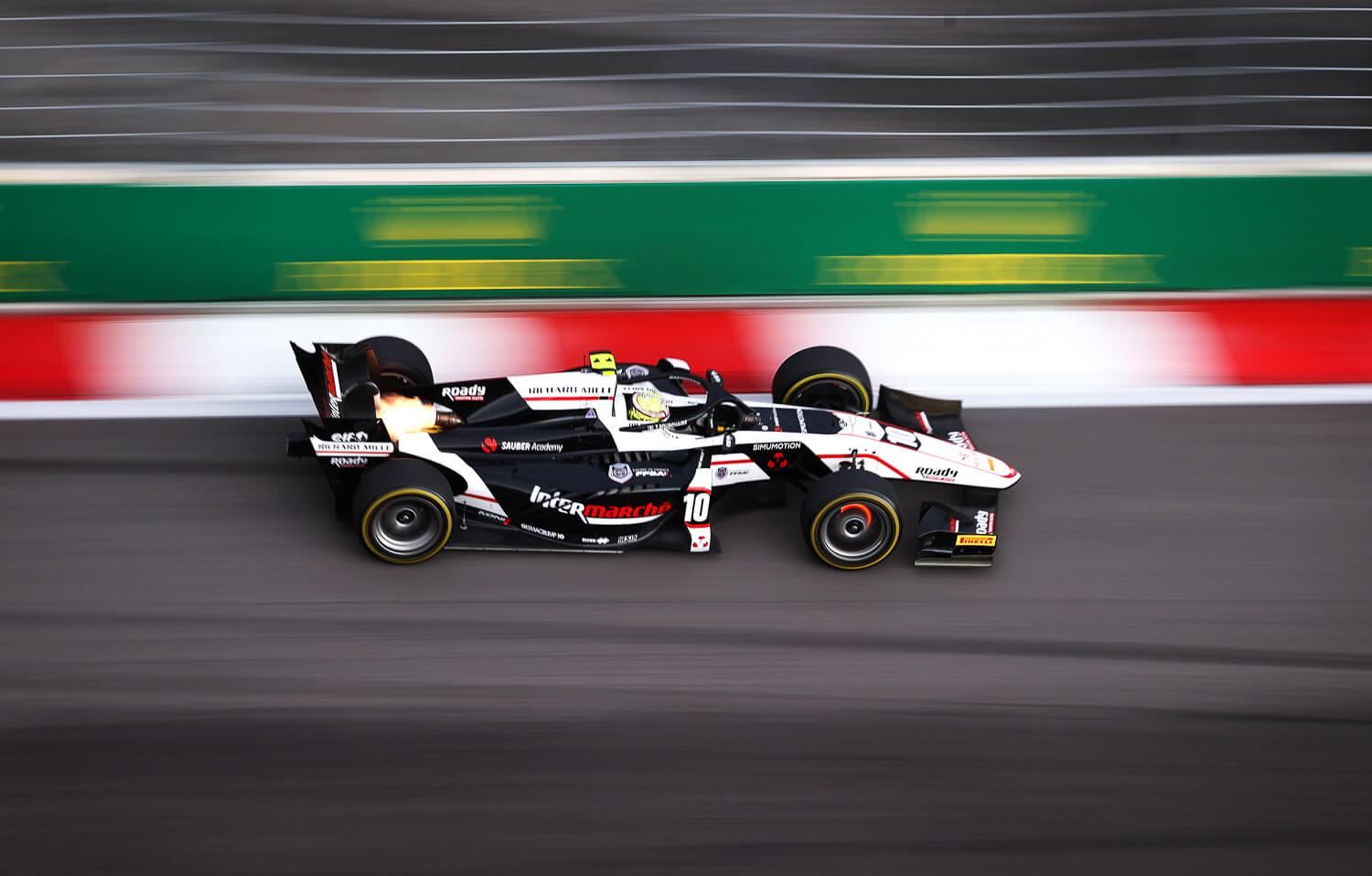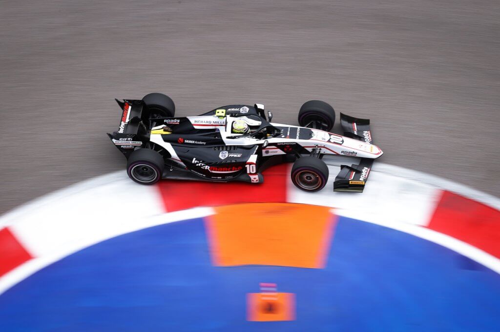 SOCHI, RUSSIA - SEPTEMBER 25: Theo Pourchaire of France and ART Grand Prix (10) drives during sprint race 1 of Round 6:Sochi of the Formula 2 Championship at Sochi Autodrom on September 25, 2021 in Sochi, Russia. (Photo by Lars Baron - Formula 1/Formula Motorsport Limited via Getty Images)